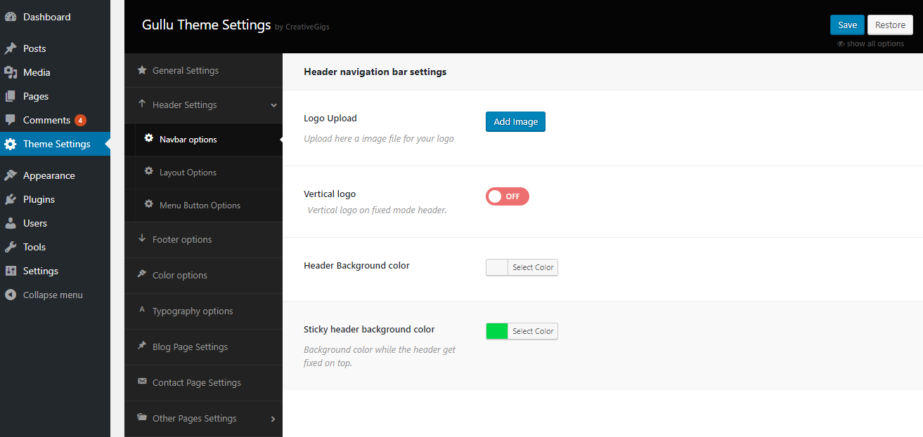 Header Settings Estimated reading: 1 minute In the Header settings section, you will get a lot of header customization options. In this section, you can change the logo and set the menu button, navigation bar settings etc.